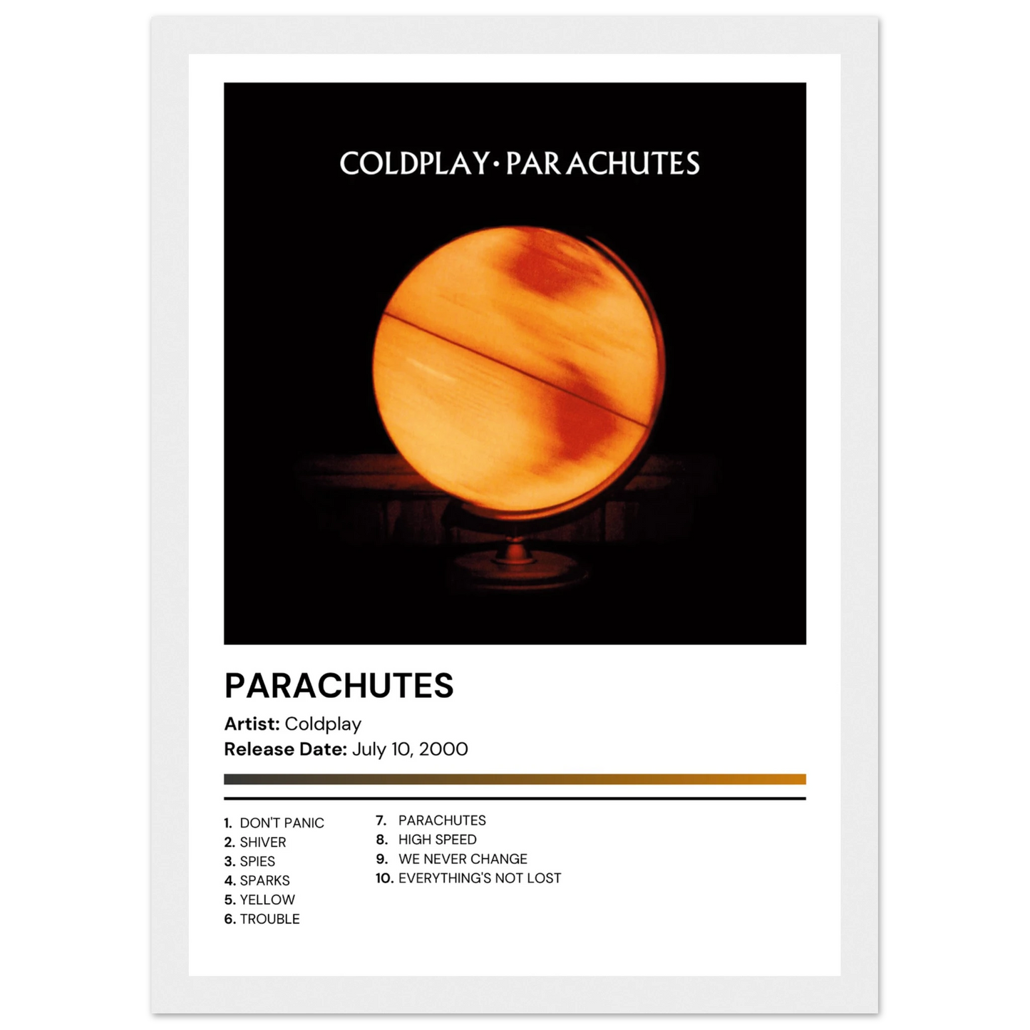 Coldplay - Parachutes - Premium Album Poster With Frame (Spotlight)