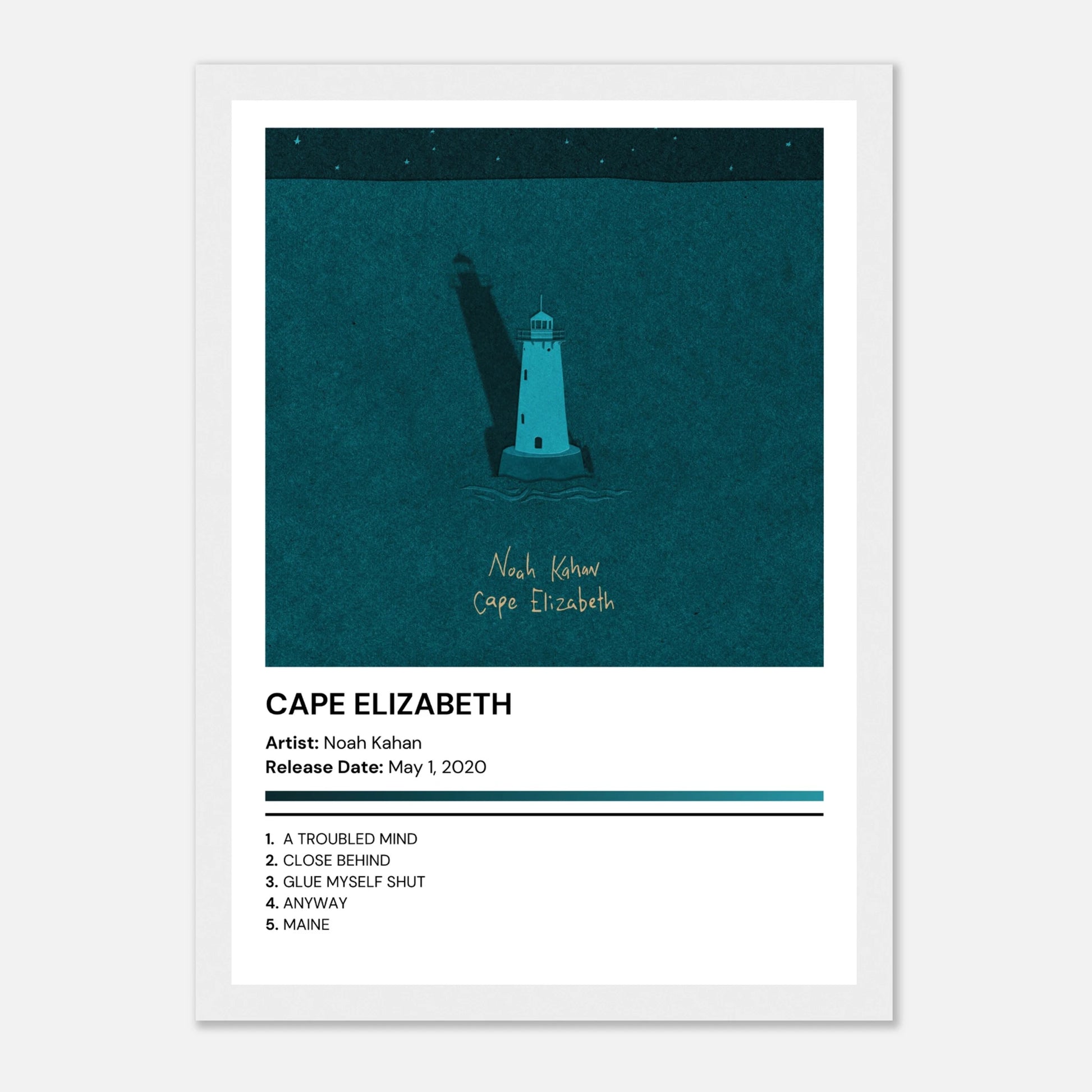 Noah Kahan - Cape Elizabeth - Premium Album Poster With Frame (Spotlight)