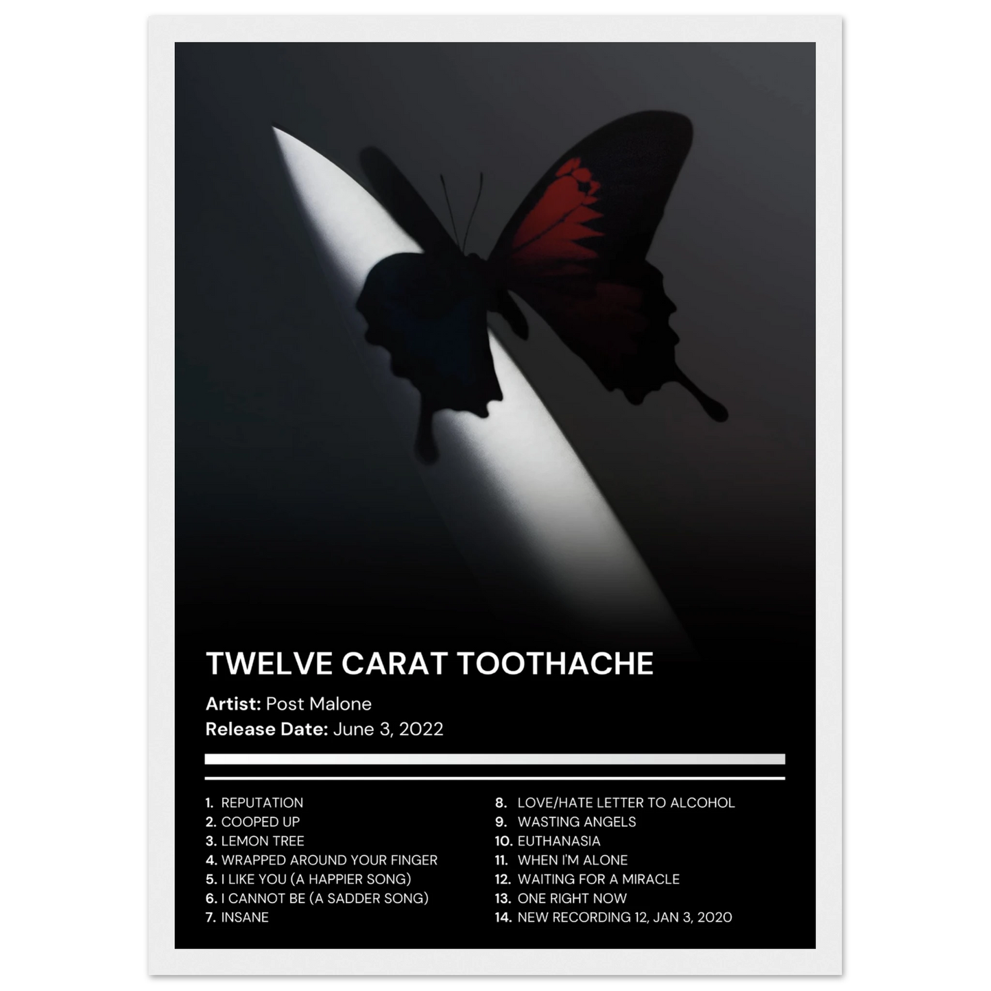Post Malone - Twelve Carat Toothache - Premium Album Poster With Frame (Full Art)